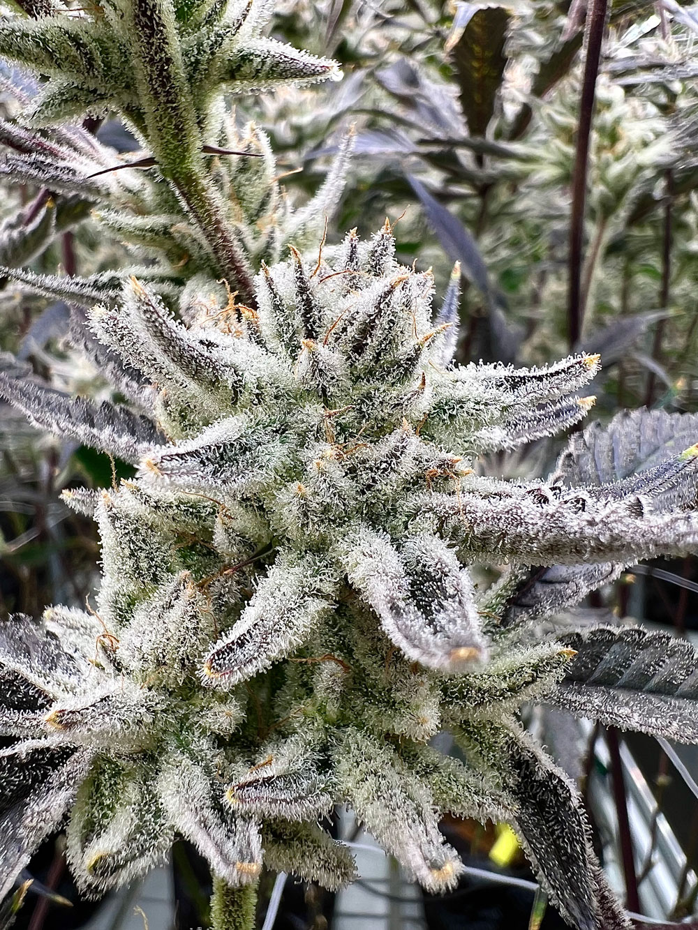 With a striking visual appeal, its dense buds feature a super dense frosty layer of trichomes, hues of pale green and icy lavender, reminiscent of winter’s chill.